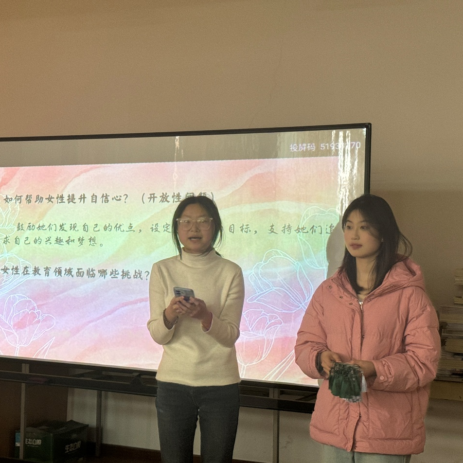 在个人分享环节,龚星潼、詹雨菲等同学结合自己的成长经历和学习体验,分享了对于“她”力量的理解和感悟。有的讲述了在女性教育工作者、女性科学家的精神感召下,散发微光、努力追梦的故事;有的分享了自己在社团实践中锻炼能力、收获成长的故事;还有的女生表达了对未来职业规划的思考和展望。