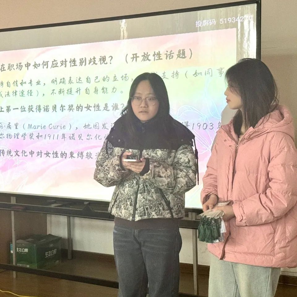 知识问答环节则考验了女生们的知识储备和反应能力。在你来我往的问答中,丁晗、徐毓潞、朱泓澄等同学展示了她们的博学和机敏,同学们加深了对历史文化、女性健康、美容护肤等方面知识的了解。