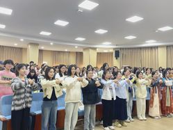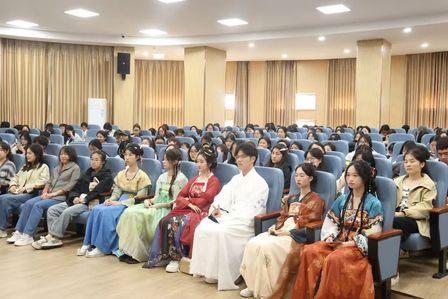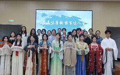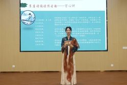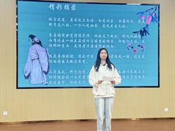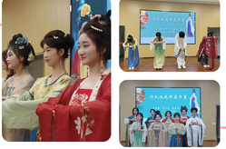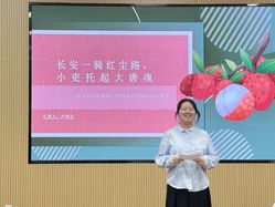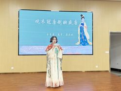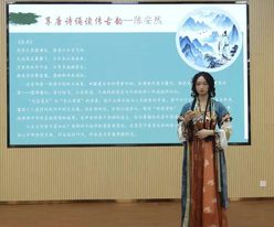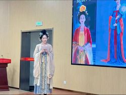 作为杨贵妃享乐象征的荔枝,冷链运输中的高额成本……无不彰显了盛唐的繁华和奢靡。在主持人的款款走来中,多姿多彩的盛世图景在同学们面前徐徐展开。高宇、晏庆欢两位同学身着华美的襦裙,生动的讲解、精彩的展示,尽显唐代服饰的雍容气度。