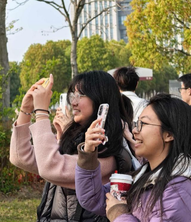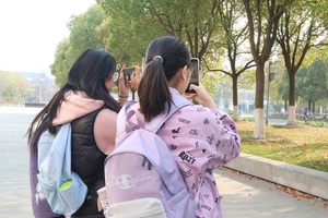 理论讲解结束后,同学们满怀期待地开启校园外拍实践。校园的各个角落瞬间成为天然摄影棚,古雅的纪念馆、校园的花坛旁、阳光下的大树……都留下了同学们专注的身影。在拍摄光穿过树梢时,左子奕和黄冠铨同学在旁边指导光圈如何调节,通过不同光圈值下拍摄树梢的照片,让同学们直观感受大光圈下营造的虚化效果,小光圈带来的全景清晰画面。同学们学以致用,尝试运用不同的拍摄参数和构图方式,记录下校园的独特之美。有的同学专注捕捉建筑细节,有的则热衷于抓拍校园生活的温馨瞬间。参与的同学纷纷表示,在实践中真切体会到“理论照进现实”的创作乐趣。