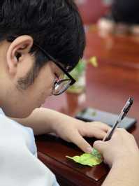 创意表达环节。同学们将绵绵情思融于笔端,他们在四叶草、树叶等形状的便签上写满对妈妈的真挚话语,并精心制作祝福书签。黄冠铨更以翰墨寄情,用“游子吟”的笔走龙蛇完成对母亲的深情表达。当这些承载心意的作品被快门声定格,这份独特的情感印记也被相片记载,这一刻,母爱不再只是文字的传递,更是情感的具象表达。