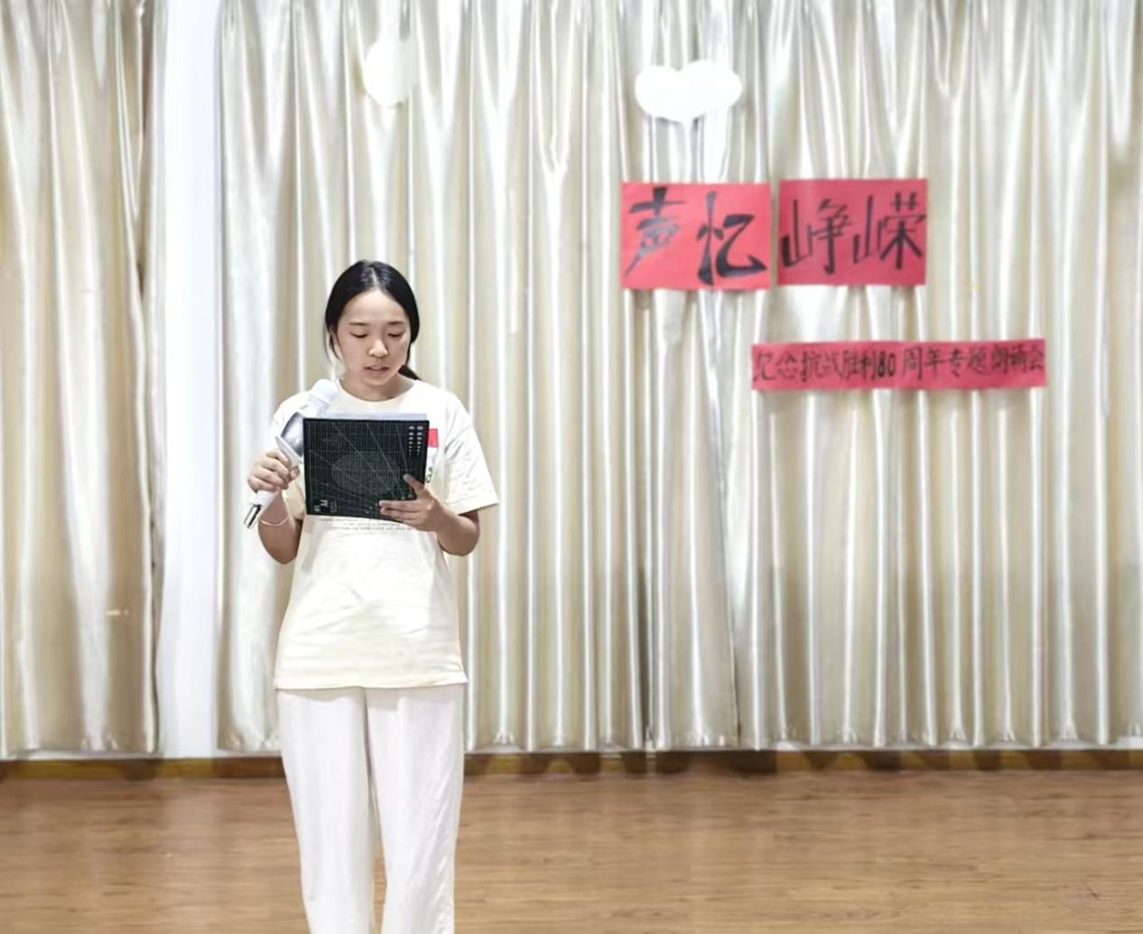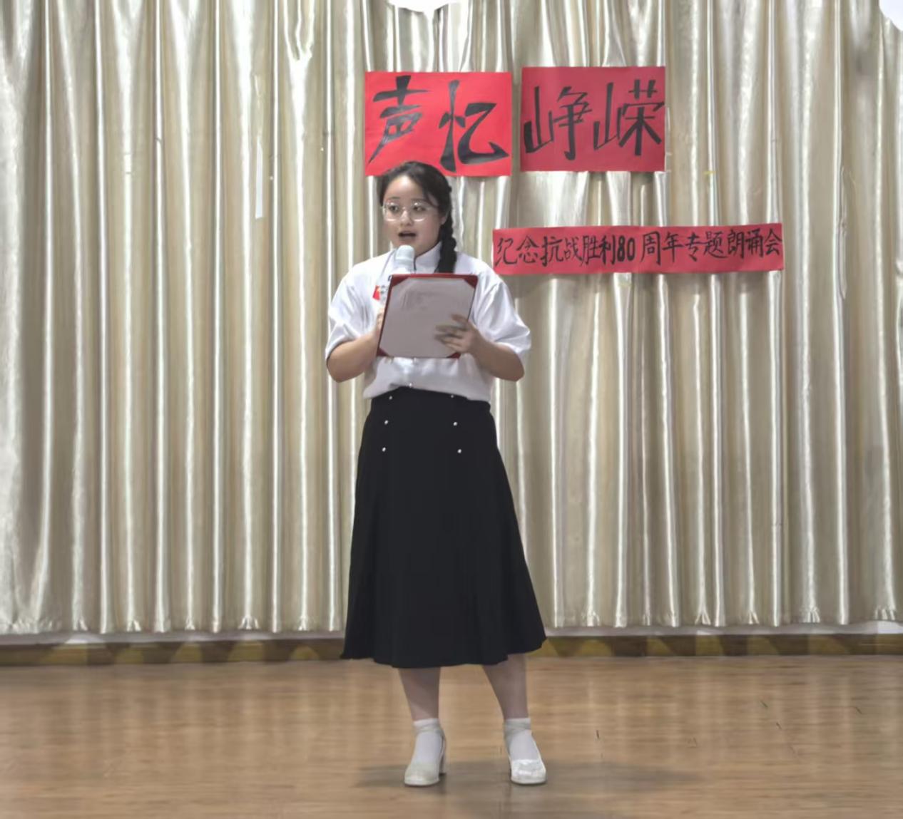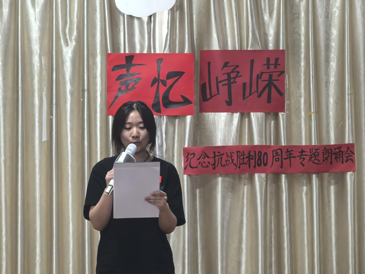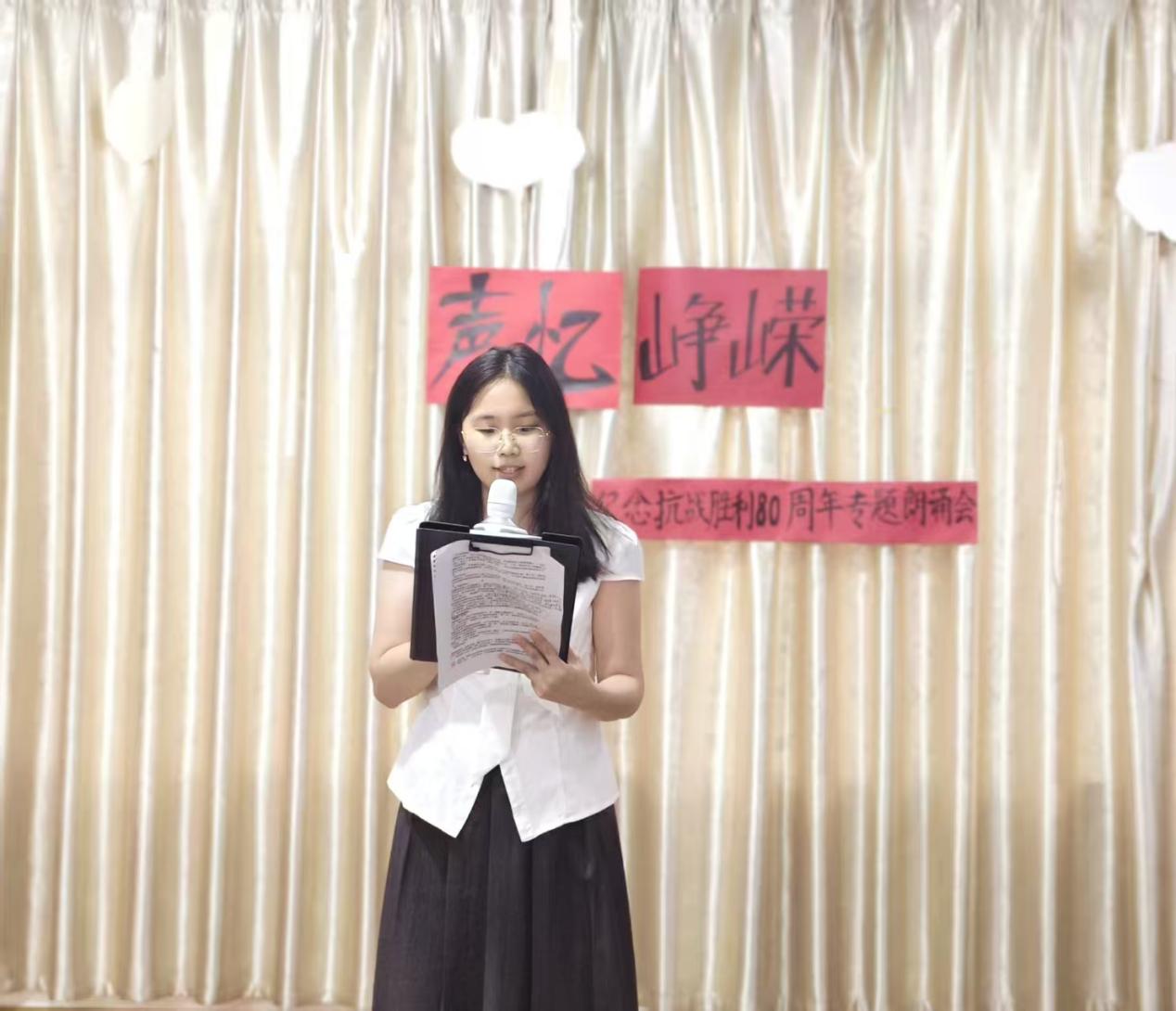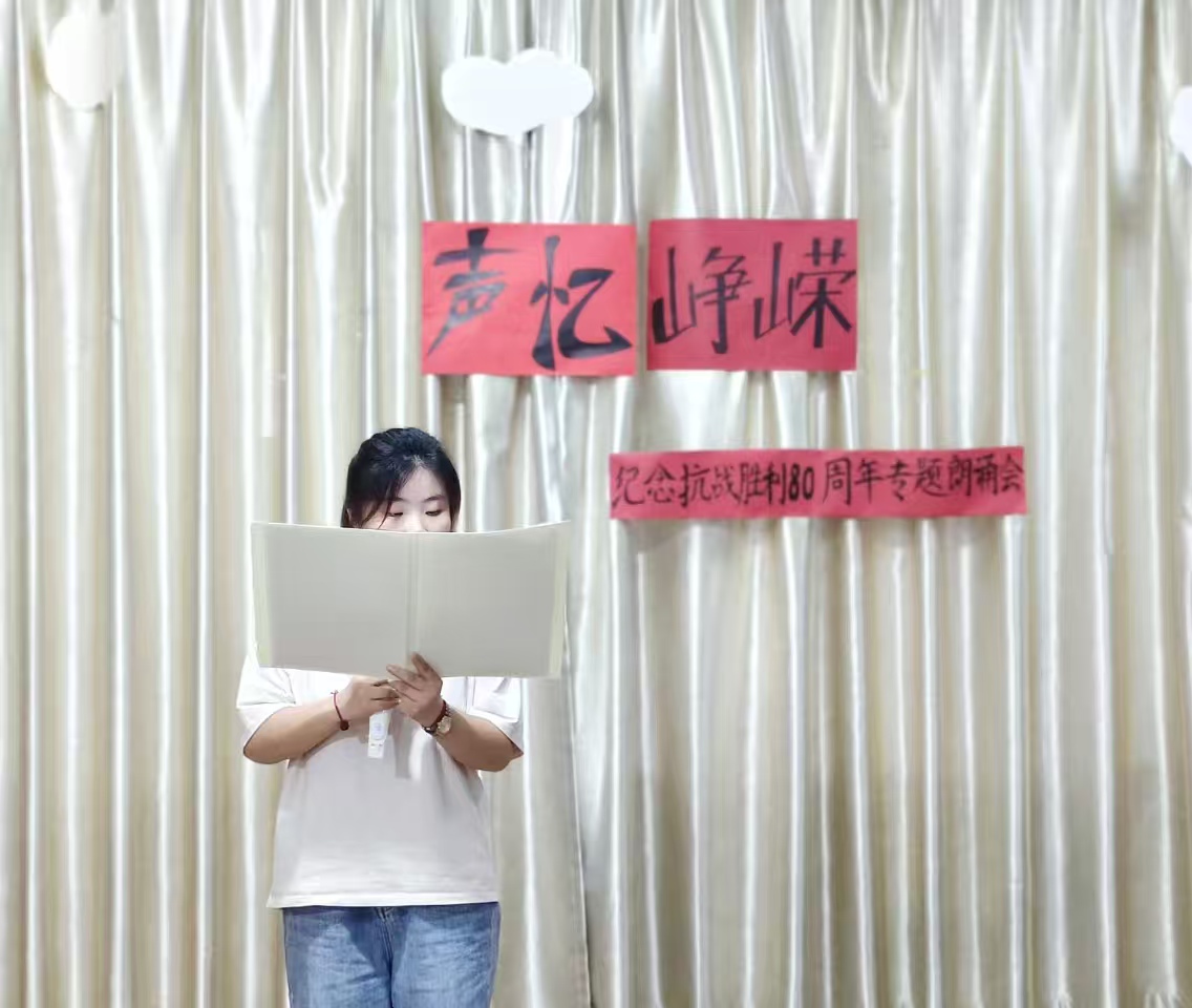 伴随庄重而深情的开场白,朗诵会正式拉开帷幕。主持人沈雨婷动情致辞:“八十年风雨沧桑,八十年山河巨变。历史的回声从未消散,英雄的呐喊依旧滚烫。”这番话语不仅精准点明活动主题,更为整场朗诵会奠定了肃穆庄重且激昂向上的情感基调。