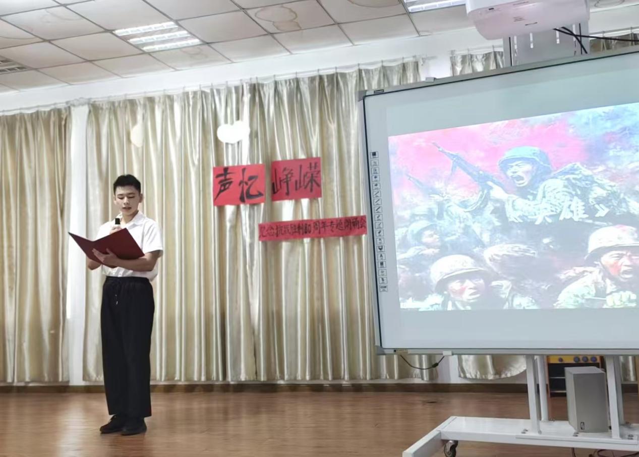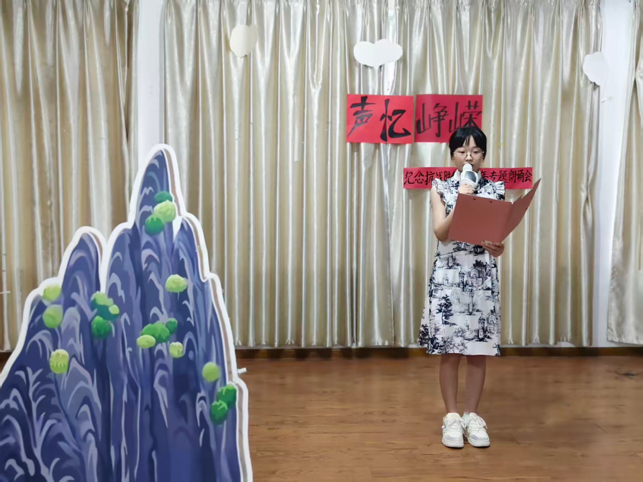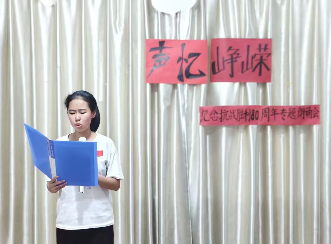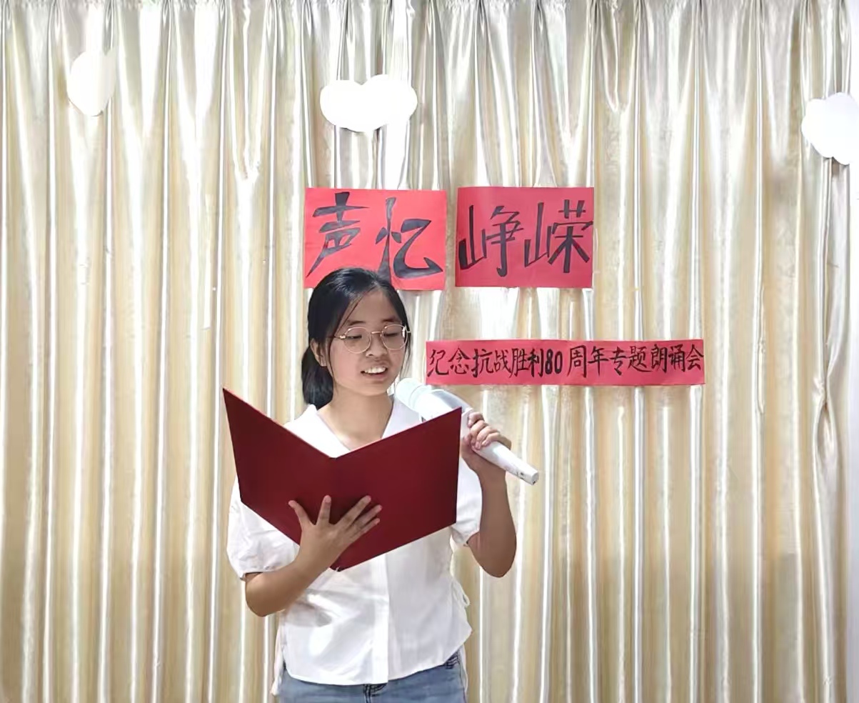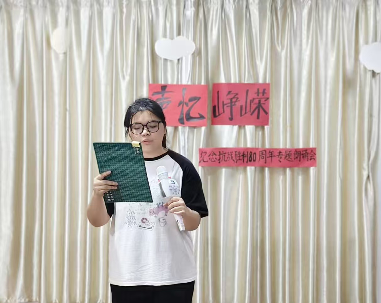伴随庄重而深情的开场白,朗诵会正式拉开帷幕。主持人沈雨婷动情致辞:“八十年风雨沧桑,八十年山河巨变。历史的回声从未消散,英雄的呐喊依旧滚烫。”这番话语不仅精准点明活动主题,更为整场朗诵会奠定了肃穆庄重且激昂向上的情感基调。