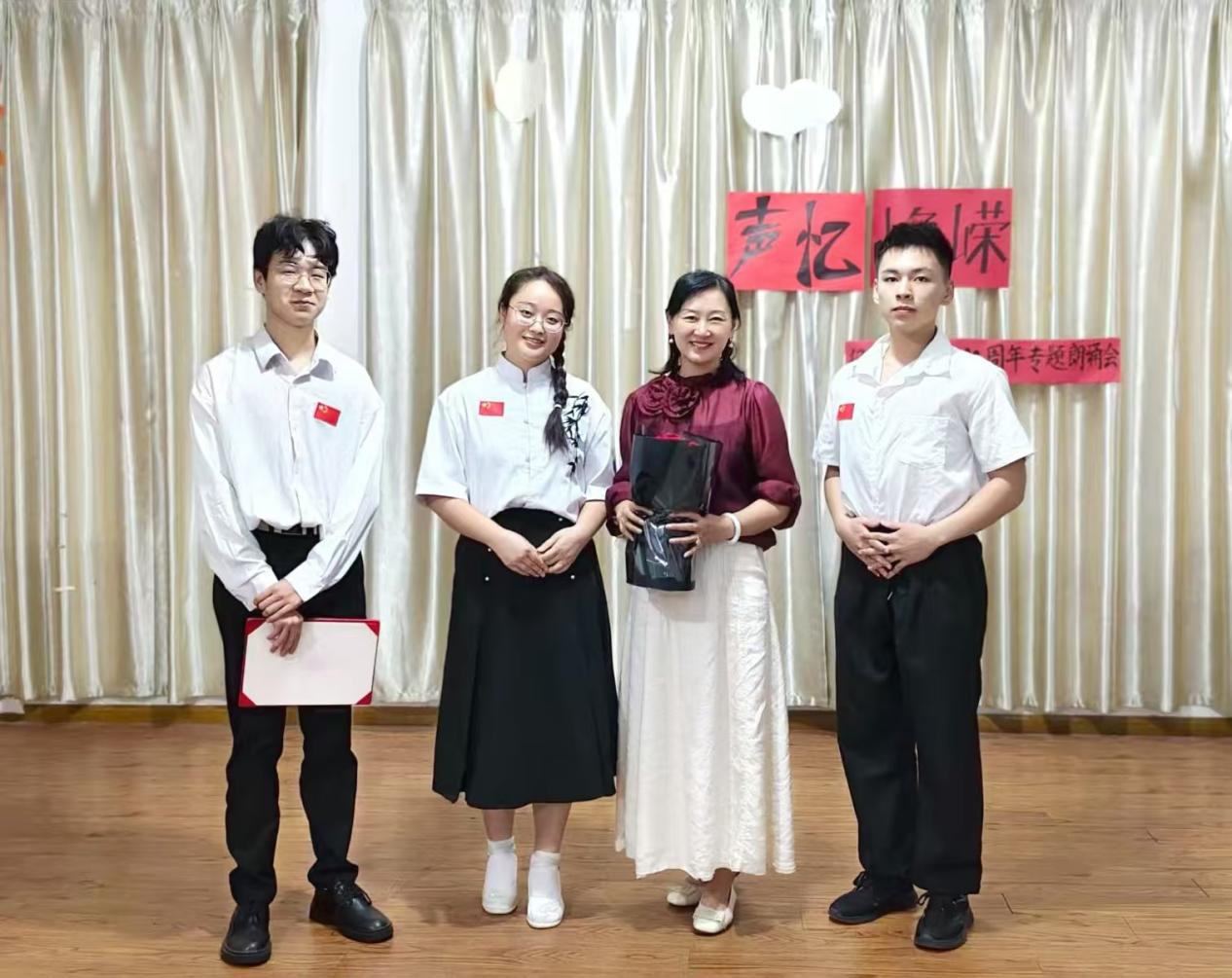 活动最后,全体朗诵者共同登台,齐声朗诵舒婷的经典诗作《祖国,我亲爱的祖国》,在整齐而深情的朗诵声中,朗诵会圆满落下帷幕。“铭记历史,是为了更好地开创未来。”这不仅是对整场活动的升华,也是对在场每一位观众的深切寄语。