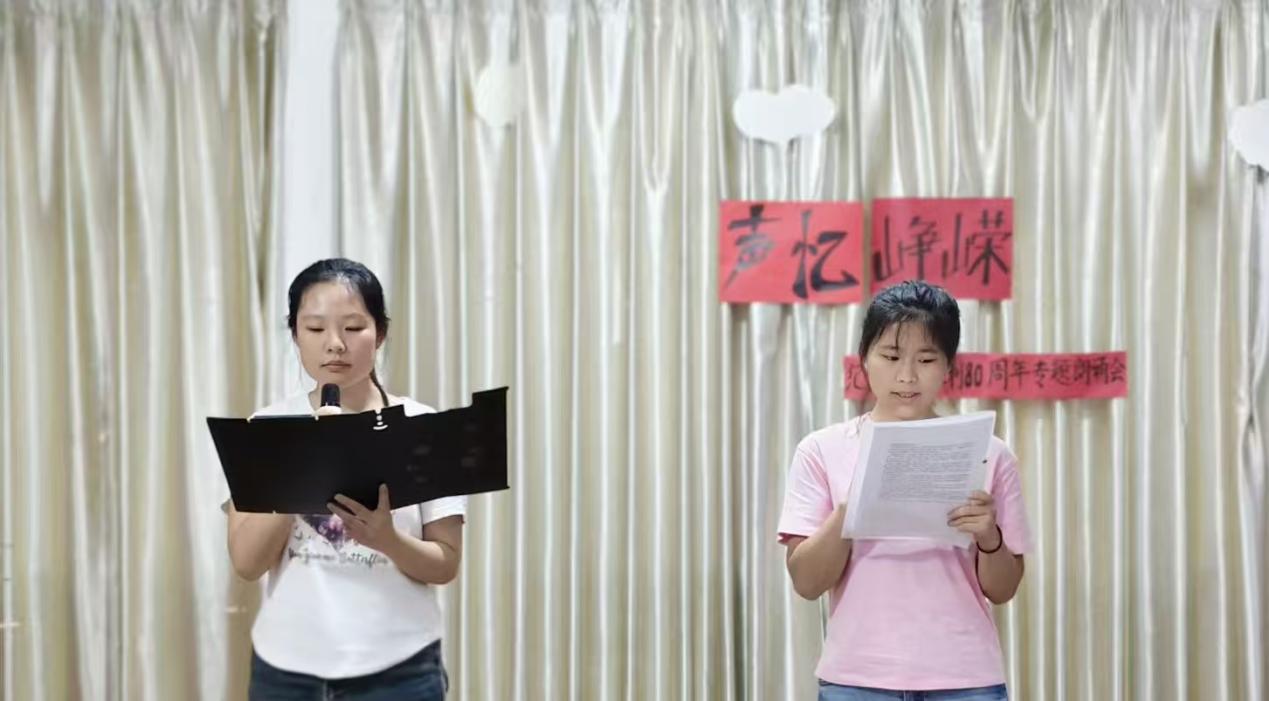 9月22日下午4时,崇川校区东润读书会在科技馆四楼小剧场隆重举办“声忆峥嵘——纪念抗战胜利80周年专题朗诵会”。本次活动以声音为媒,以文字为舟,引领在场同学穿越时空,重温那段烽火连天的峥嵘岁月,致敬那些为抗战献出宝贵生命的英雄儿女。