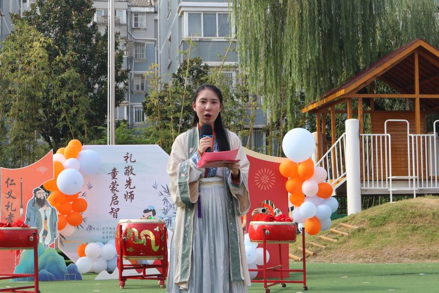 9月28日上午8:30,“童蒙启智 礼敬先师”孔子诞辰日纪念活动——在南通市新开街道星海幼儿园操场温情启幕。本次活动由新开街道便民服务和社会事业办公室、南通师范高等专科学校联合主办,新开街道星海幼儿园、星海社区居民委员会共同承办。现场,大班组的一百余名幼儿与街道领导、幼儿园教师、南通师范高等专科学校读者协会及家长志愿者齐聚一堂,以“孔子”为文化纽带,在沉浸式体验中感受中华优秀传统文化的魅力,在幼儿心中播下“尊师重道、知礼明仪”的种子。
