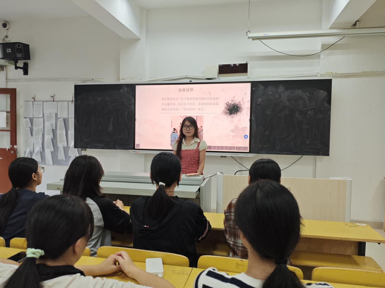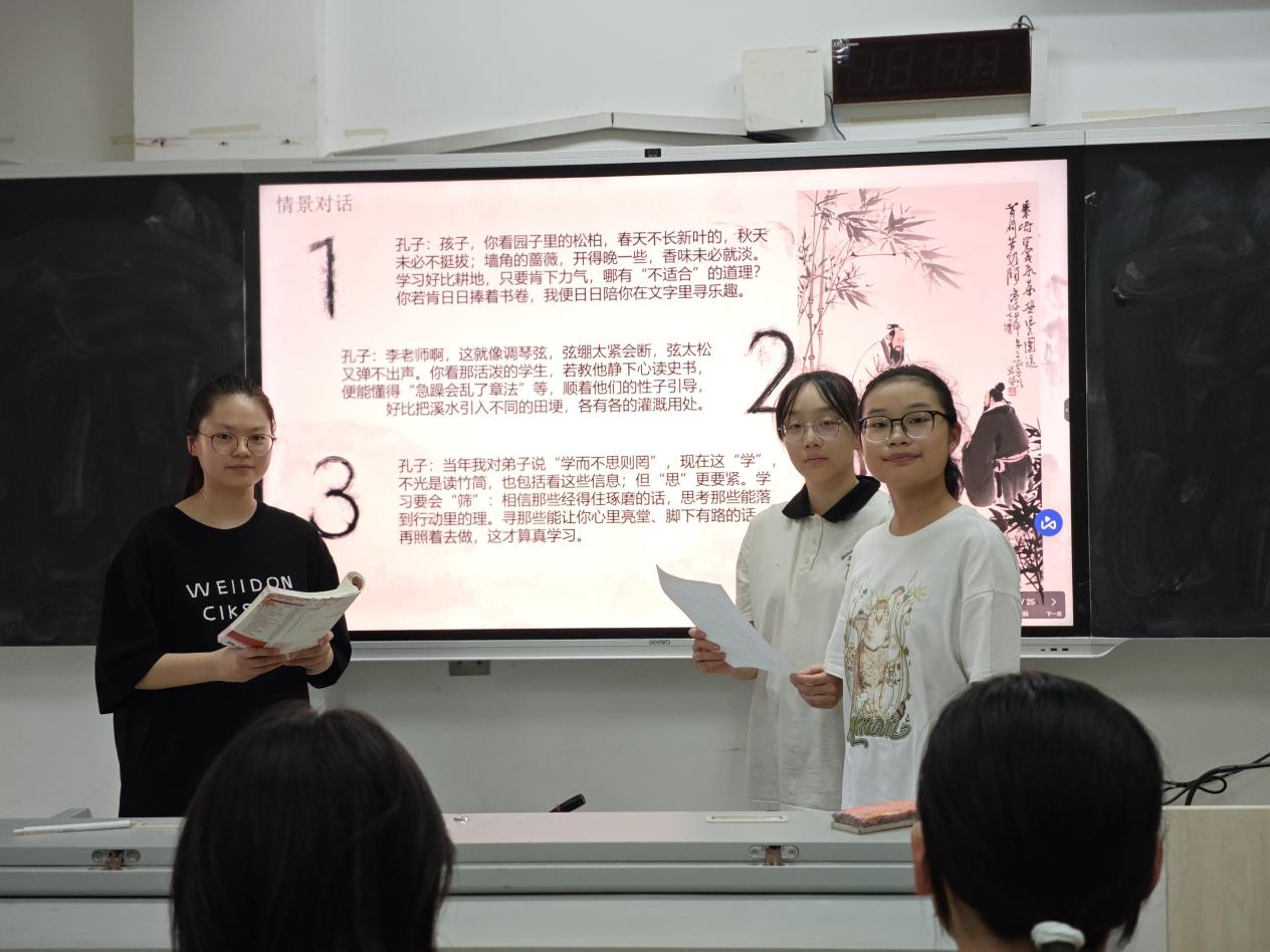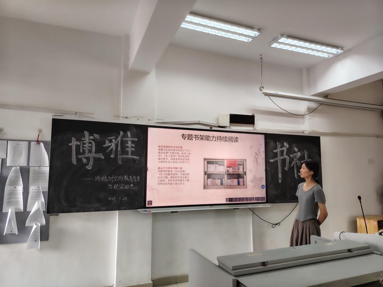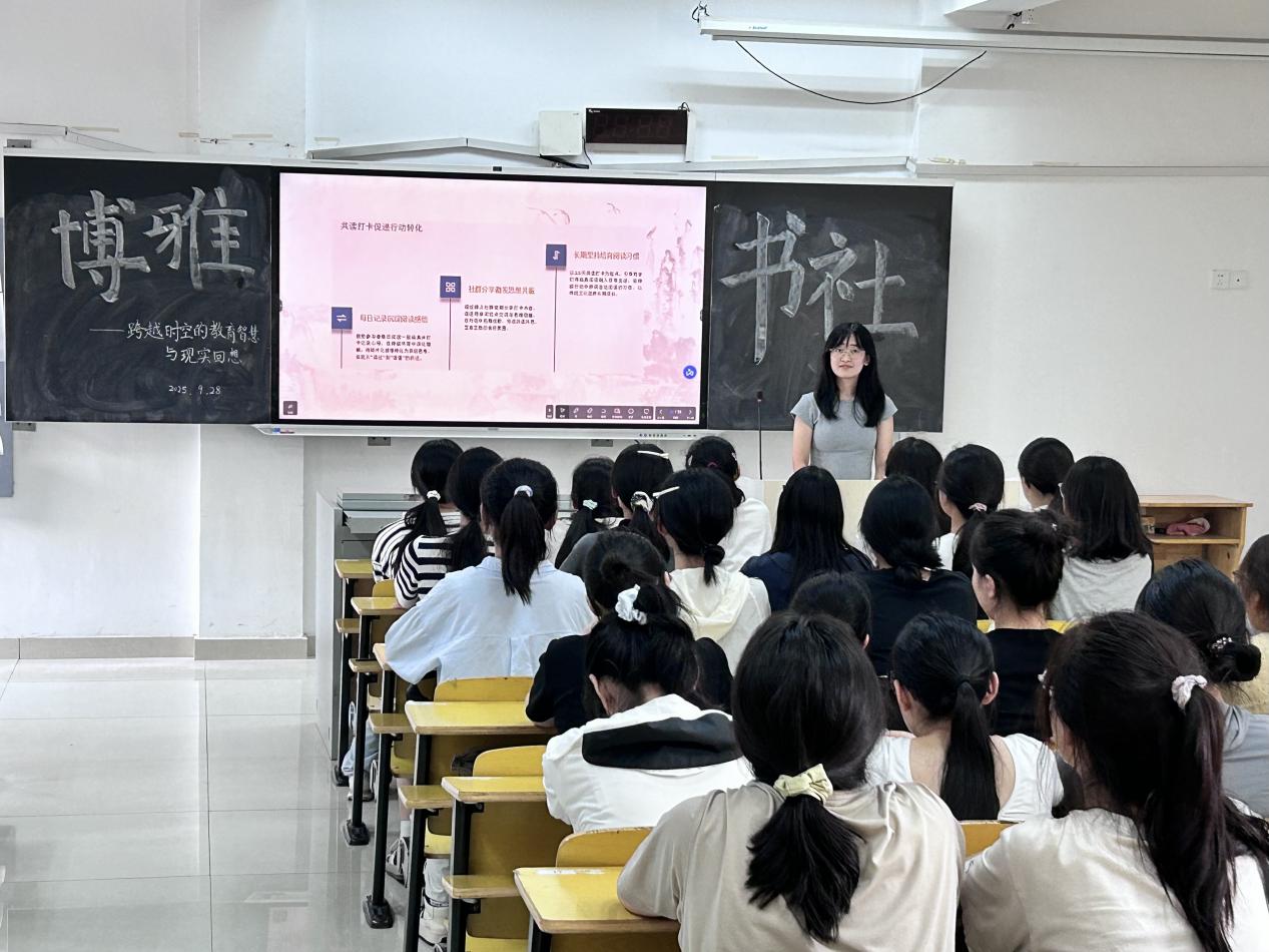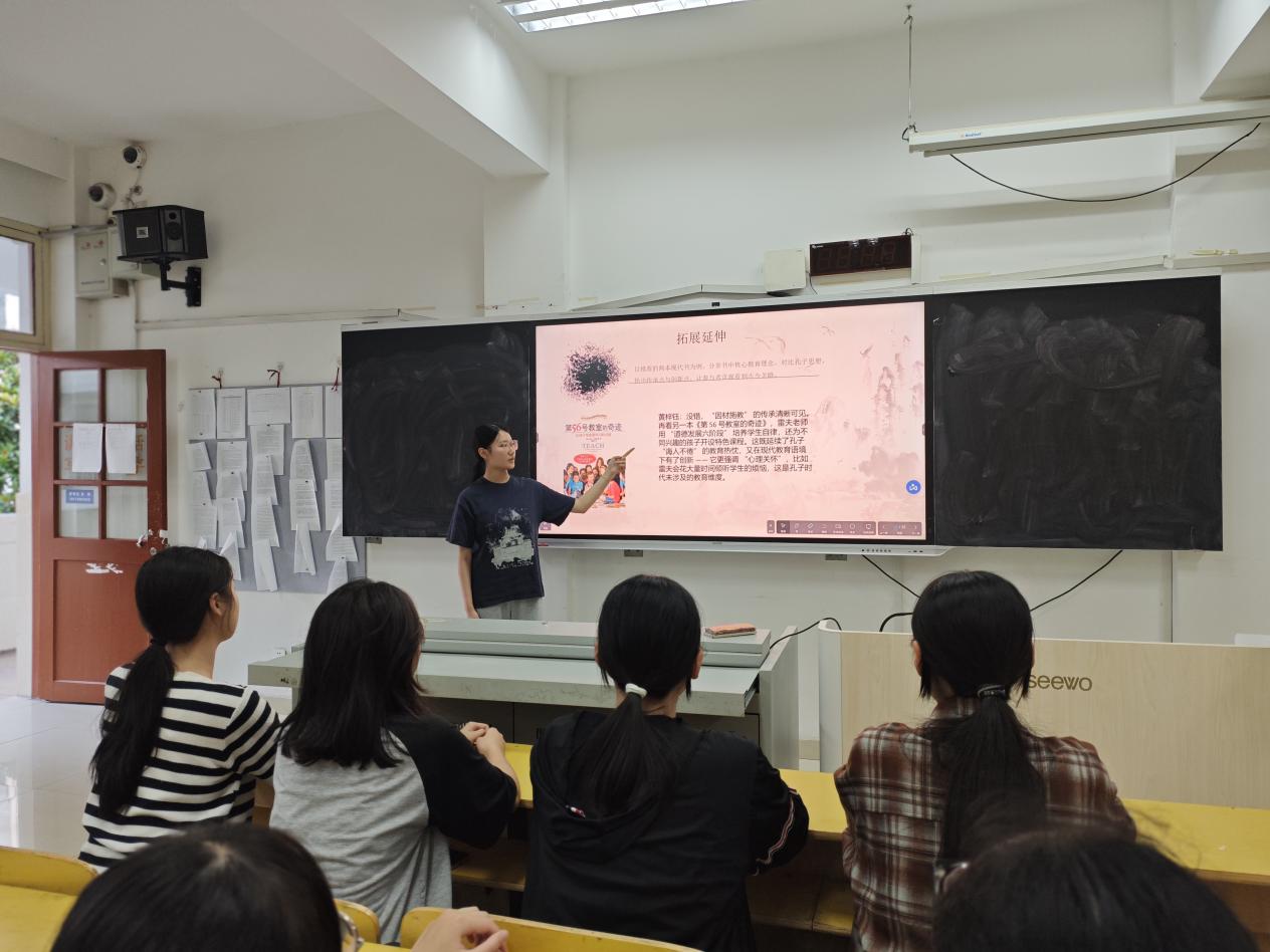 从《窗边的小豆豆》里尊重天性的“散步教学”,到《第56号教室的奇迹》中点燃心灵的“育人智慧”,经吴钰倩、黄梓钰等同学的深入剖析,这些教育理念与孔子“浴乎沂,风乎舞雩”的教育理想隔空回响,共同谱写着从“诲人不倦”到“关怀心灵”的教育新章。