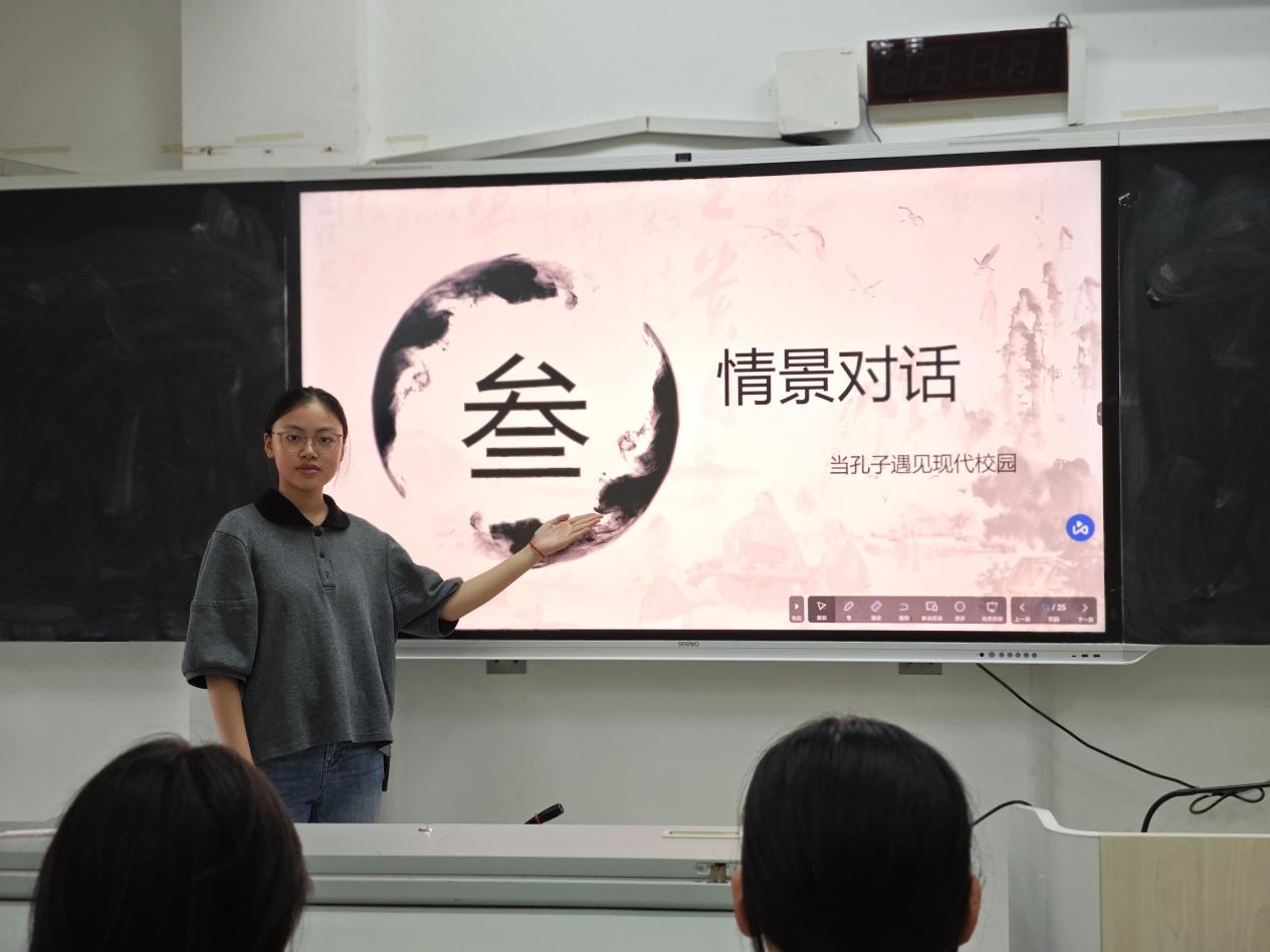 程心莹、卢奕含两位同学率先解析了孔子思想跨越千年的现实意义,点明活动主旨:在信息爆炸的当下,回归经典阅读,探寻教育本质,让古老智慧为现代学子的学习与成长提供滋养。