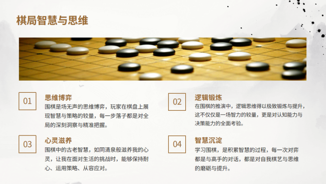 本次讲堂的核心内容,黄冠铨同学聚集于陪伴自己最久两大爱好——围棋与书画。谈及围棋,他以幼时学棋经历为切入点,坦言棋盘虽小,却如浩瀚宇宙,每一步落子都是对全局的判断与对棋子的取舍。学习围棋不仅是对弈技巧的提升,更是对心性的考验。他分享道:“在一招一式的博弈过程中,既能锤炼统筹全局的 ‘大局观’,也能涵养从容不迫的‘平常心’。”