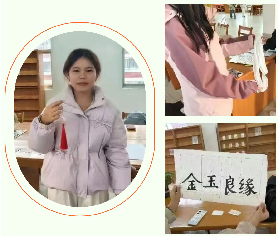 为安定心神,众人移步暖香坞,效仿先贤雅集,开启了智力与默契的双重挑战。猜谜语环节,“良药苦口利于病”(谜底:辛弃疾)、“禁止放羊”(谜底:杜牧)等人名谜题让人凝神沉思,随后的“你比我猜”,更是让“回眸一笑百媚生”、“刻舟求剑”等词条在生动演绎中焕发新生。欢声笑语里,是古典智慧与现代思维的精彩碰撞。文心玉魄,最终被同学们的机敏与博学成功唤醒。