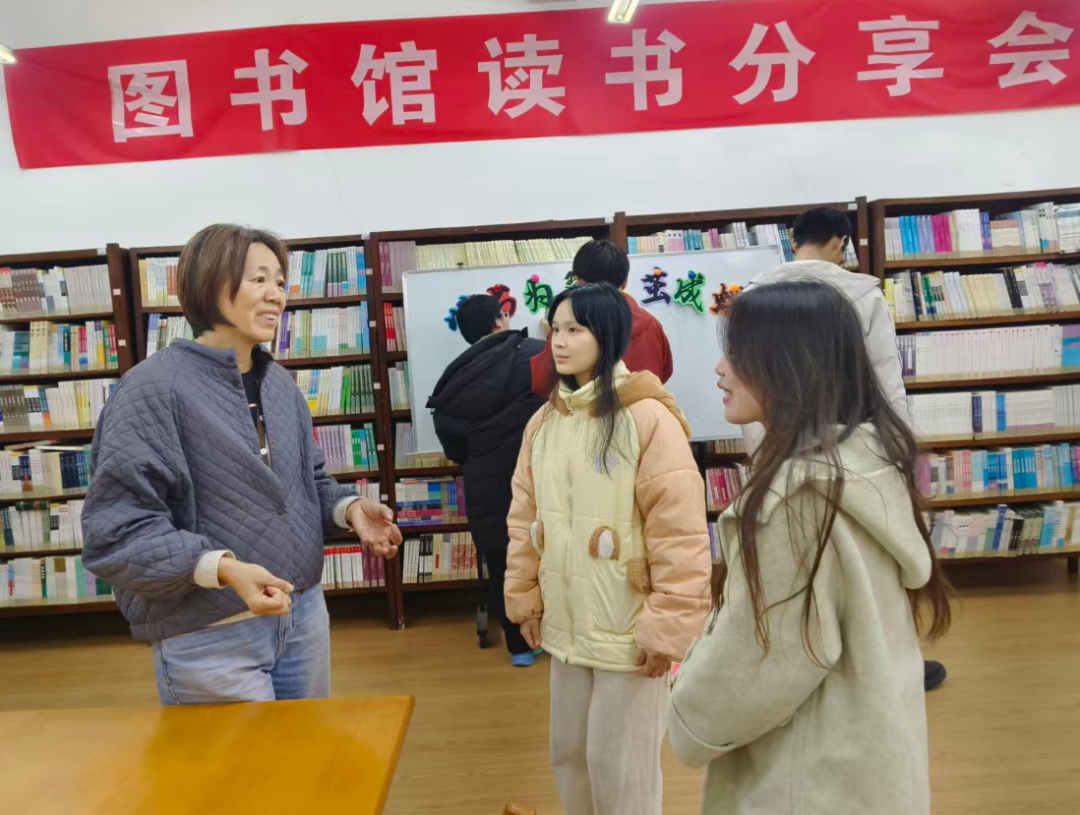 活动接近尾声,图书馆领导陈洪美对本次分享会给予充分肯定,并带来专业指导。她指出,一场成功的阅读分享活动应聚焦三个核心:经典深读、现实关切与朋辈共鸣。她鼓励书社继续打造能让同学们深度参与、真诚交流的品牌活动,让图书馆成为滋养思想、温暖心灵的精神港湾,持续为同学们的阅读疗愈与心灵成长提供支持。
