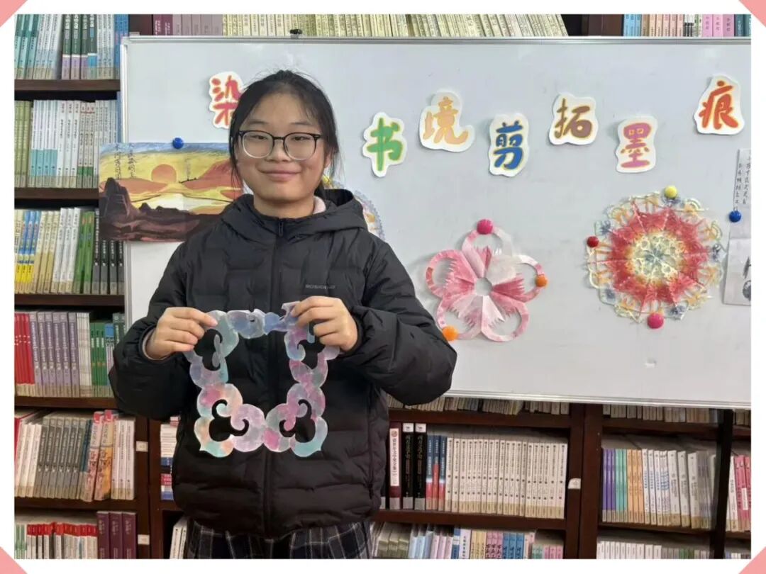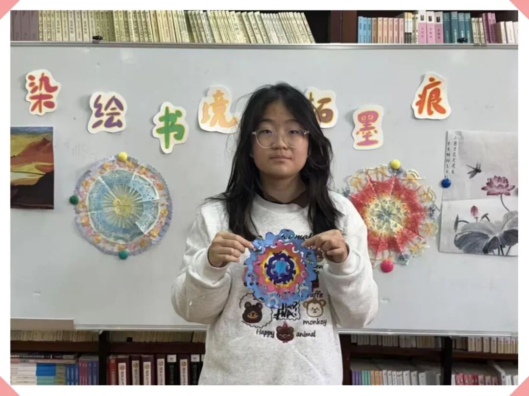 当最后一方扎染作品完成,大家小心翼翼地将各自的精心之作集中陈列,分享创作背后的巧思与故事。“我染的是‘落霞与孤鹜’,想留住那份绚烂却易逝的美好”,“我剪的是一丛竹,致敬那份向上的气节”……轻松的交流中,作品互赏,灵感交汇。最后,大家纷纷与自己的作品合影留念——这场文字与艺术的特别邂逅,让每个人都收获了一段与文字相关的独家记忆。