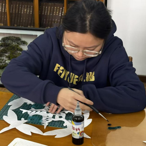 郭晶晶同学现场演示生宣剪刻技巧,柔软的宣纸在她手中仿佛有了灵性。“握刀要轻,走刀要稳”,随着她的讲解,刻刀下既可见“长河落日”的恢弘轮廓,也能精雕出“蜻蜓翅翼”的纤细纹理。同学们凝神运刀,将选定的诗意画面转化为独一无二的宣纸造型。原本平面的字符,在专注的指尖下,获得了立体的生命。