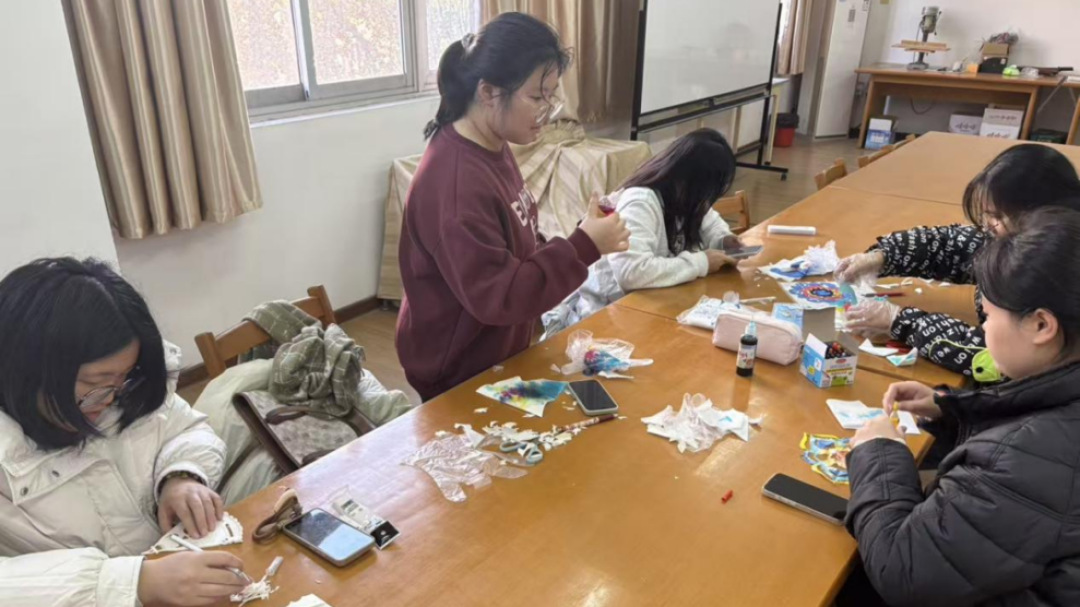当文字在书页间静卧,它是无声的叙述;当诗意跃出纸端被指尖触碰,便有了鲜活的呼吸与温度。2025年12月3日中午12时,如皋校区信息中心二楼北阅览室,一场以“生宣扎染”为主题的艺术体验活动,将诗句与指尖、意境与色彩悄然连接。在这里,文字不再是纸页上沉默的符号,而是化作了可剪、可染、可捧在手心的温度——博雅书社以一场跨界手作活动,让阅读走出书本的边界,让诗意在现实里落地生长。